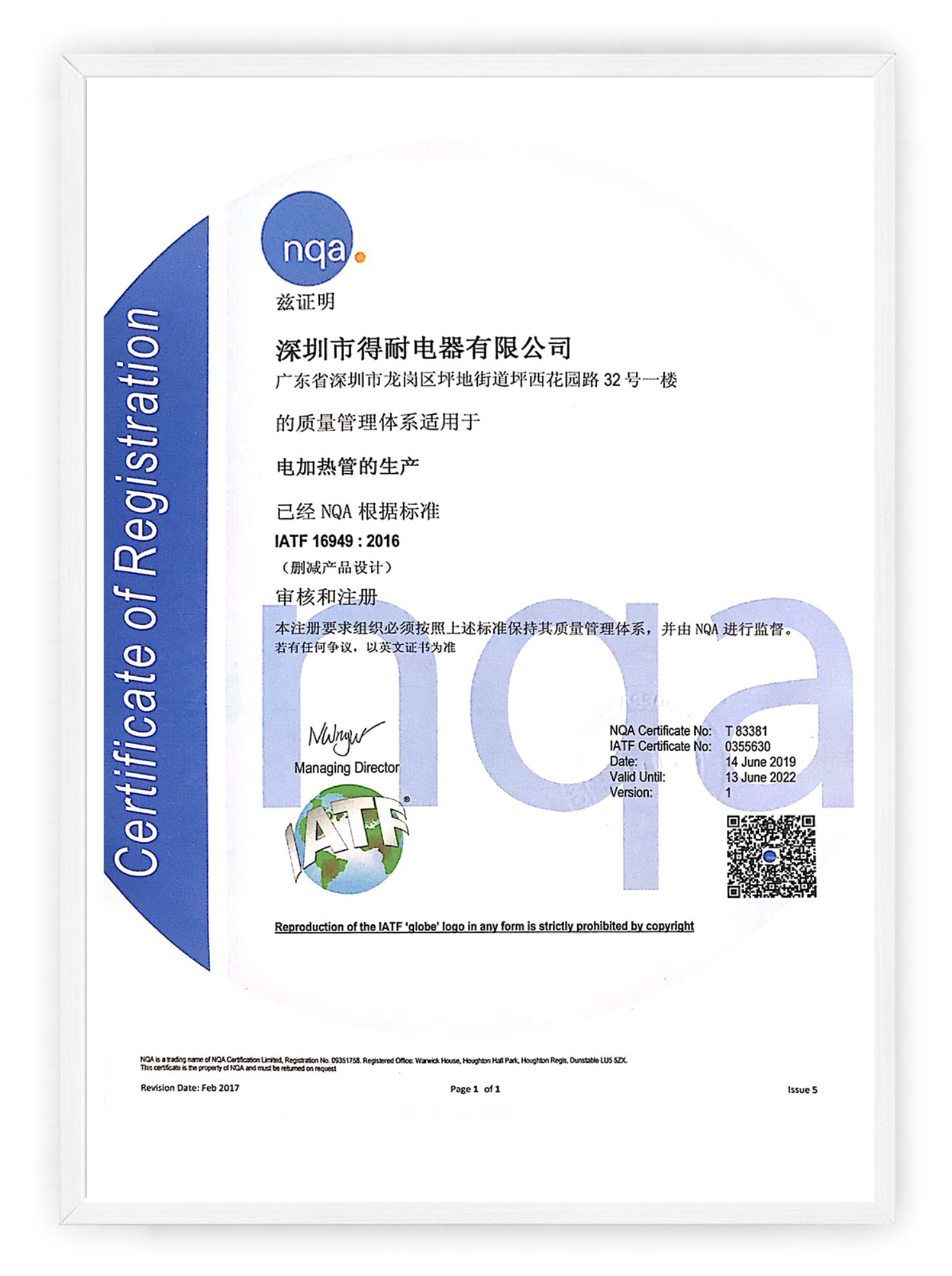 深圳市得耐电器有限公司是专业生产商用及工业电热组件的制造商,在具有竞争力价格基础上提供满足各种需求的高质量电热管、发热管产品。